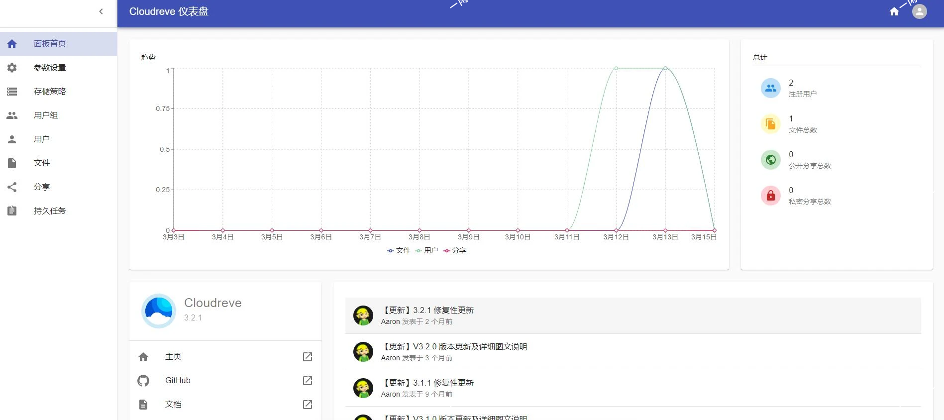Cloudreve是一款出色的国产开源免费 PHP 网盘程序 (最新版已改为 Go 语言全新开发,无需配置 PHP 环境,性能更好,也更轻量强大)。它能帮您快速简单并以最低的成本搭建一个公私兼备的网盘系统。而且安装过程非常简单,只要你有自己的服务器,几分钟就能搭建起来。你可以将 Cloudreve 作为个人私有云网盘使用,也可作为小型公共云盘给公司、团队甚至是大量用户多人共同使用。Cloudreve支持在 Windows 和 Linux 主机上搭建,功能很丰富,而且还很接地气,基本上你需要的网盘功能它都能提供。